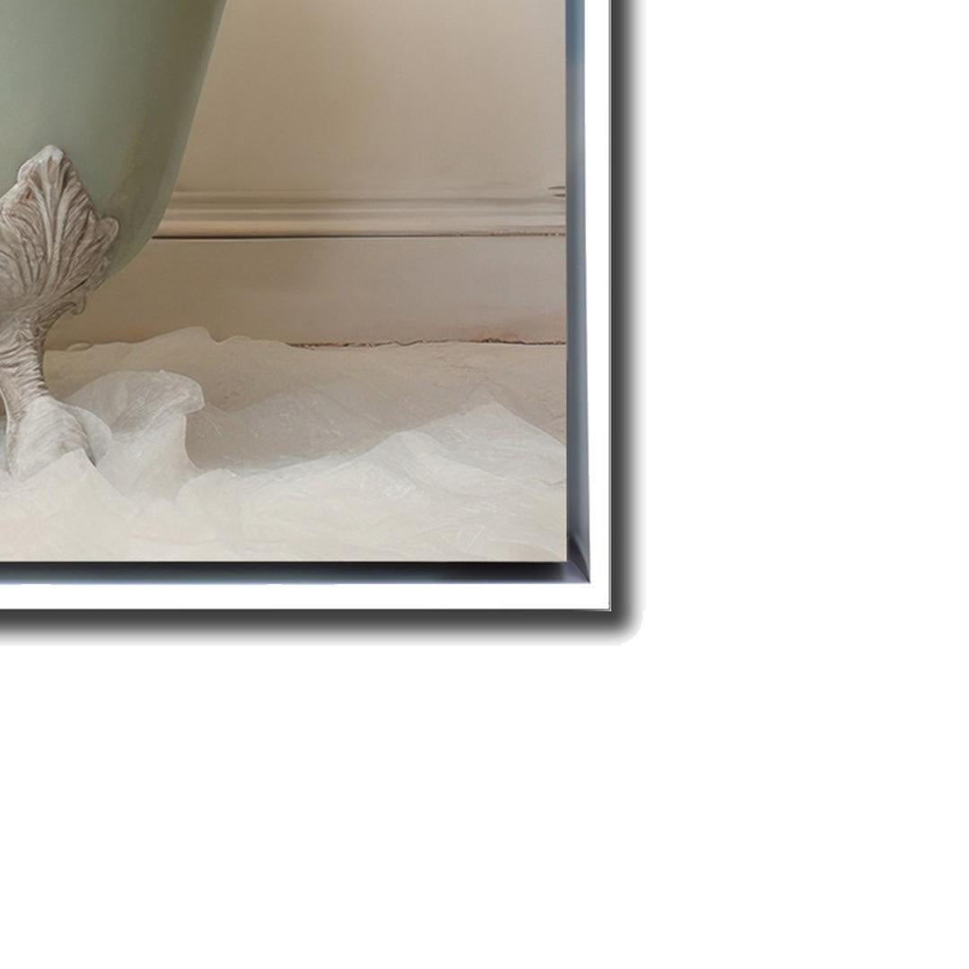 Hand embellished canvas art in a white floating frame