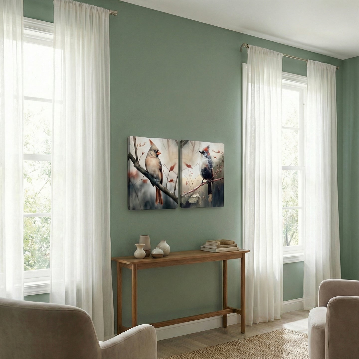 Set of 2, hand embellished canvas art gallery-wrapped on pine stretcher bar frames presented in an open-faced box