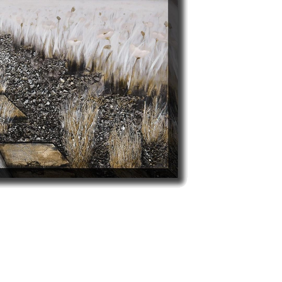 3D oil painting on gallery wrapped canvas with actual metal and stone embellishments