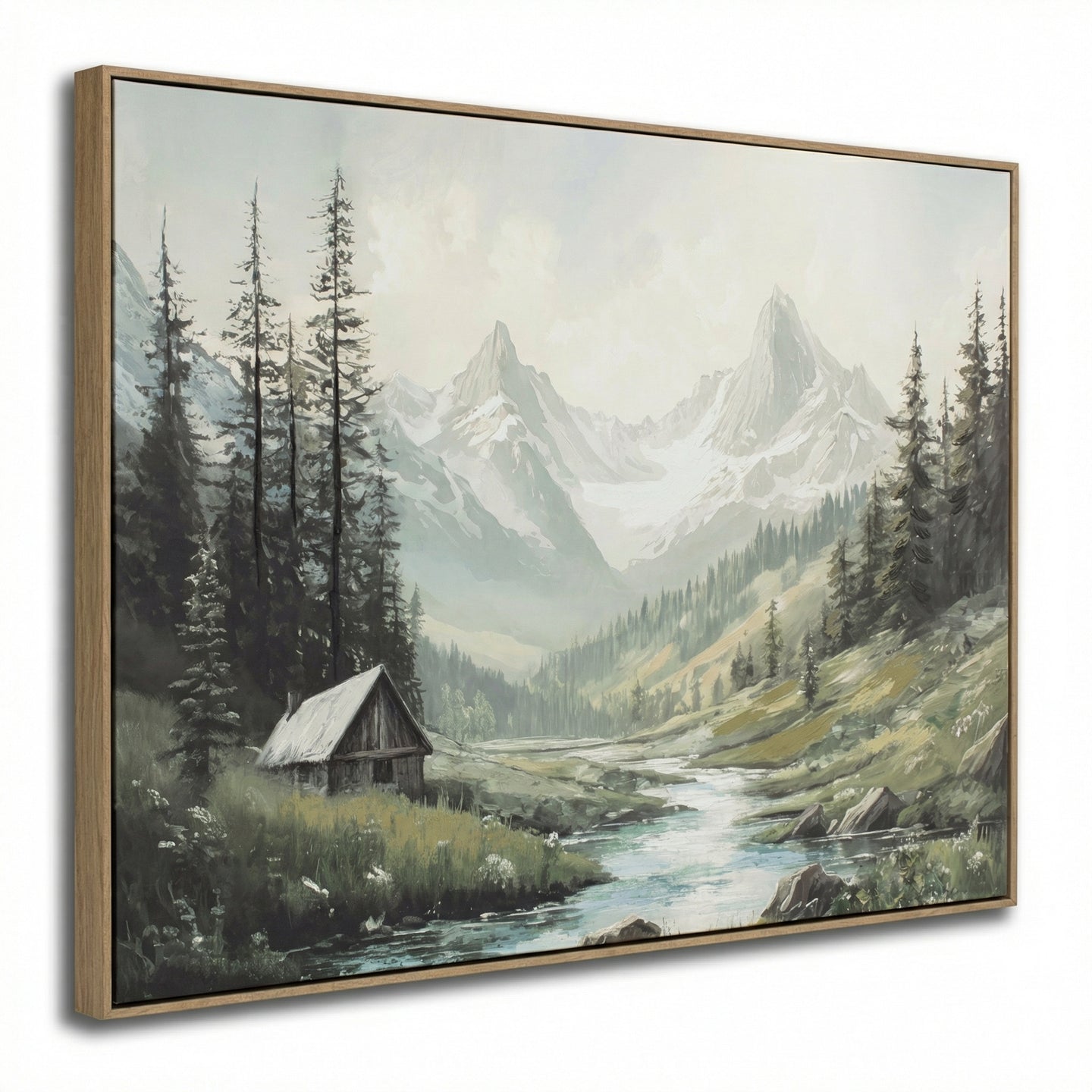 Hand embellished canvas art in a Barnwood Floating Frame
