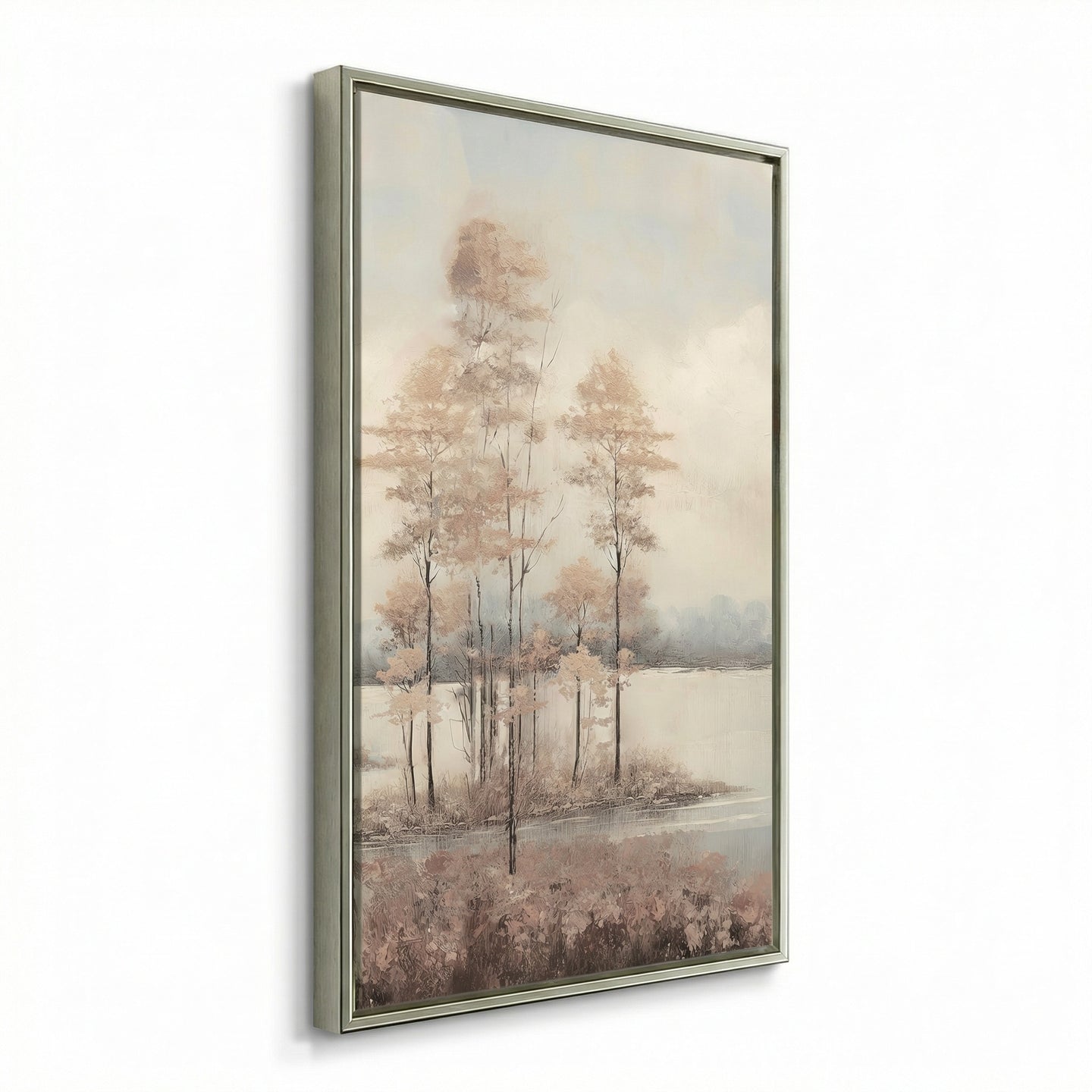 Hand embellished canvas art in a Champagne floating frame