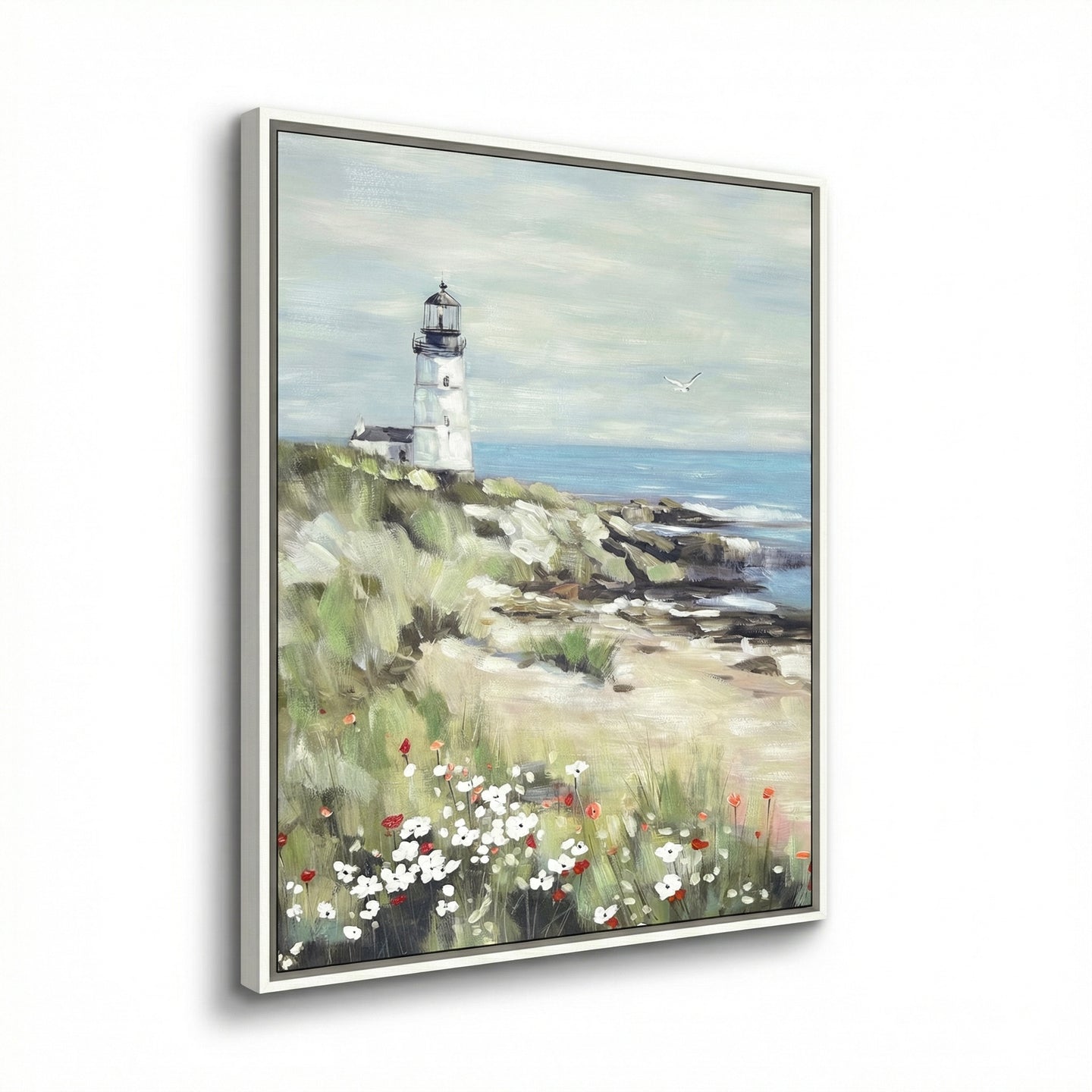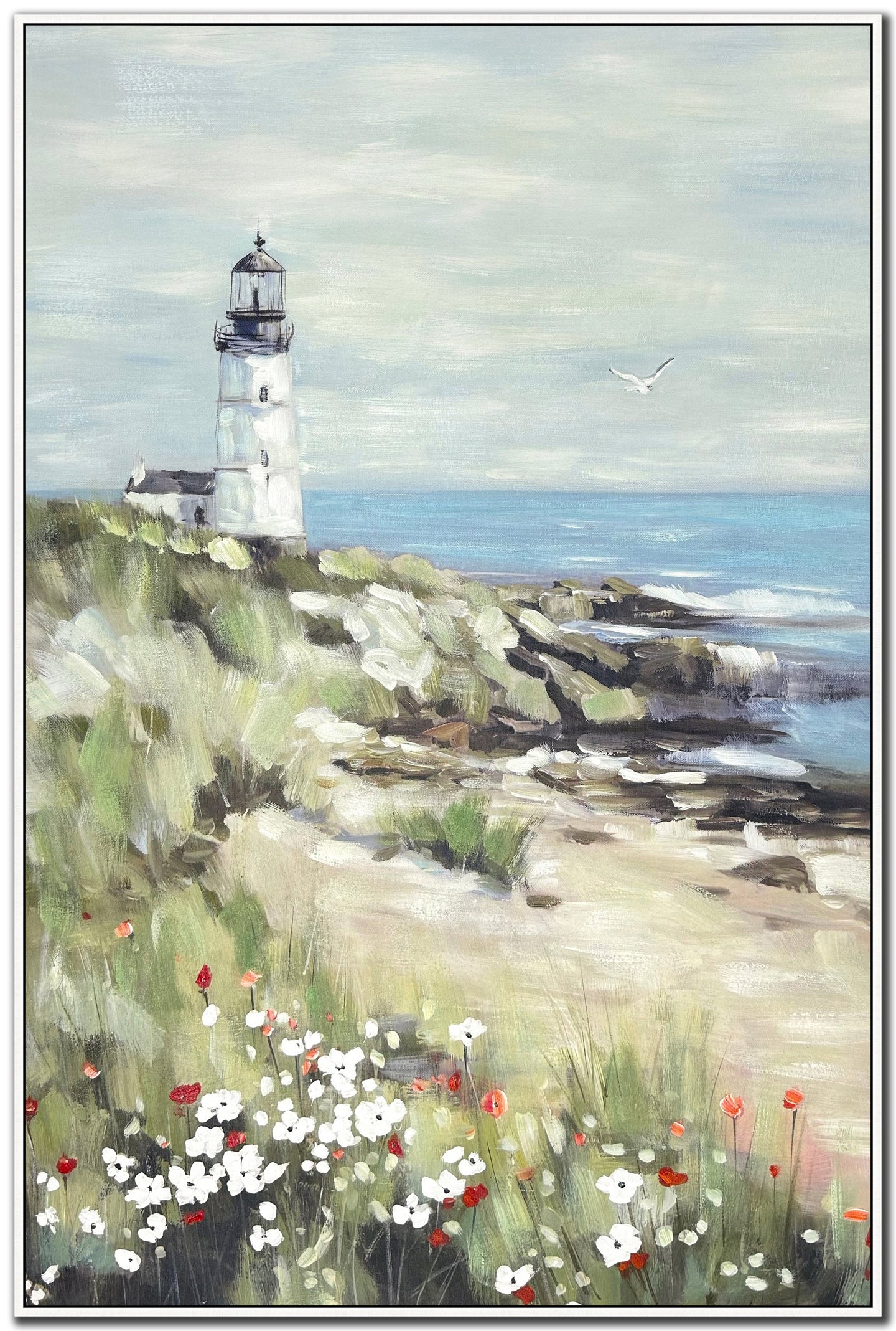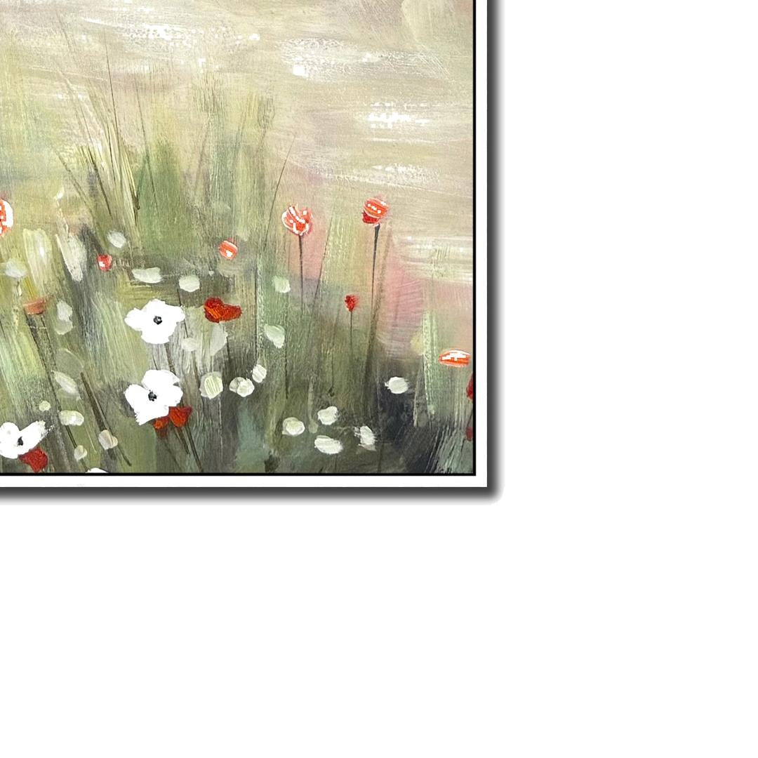 Hand embellished canvas art in a White washed Floating Frame