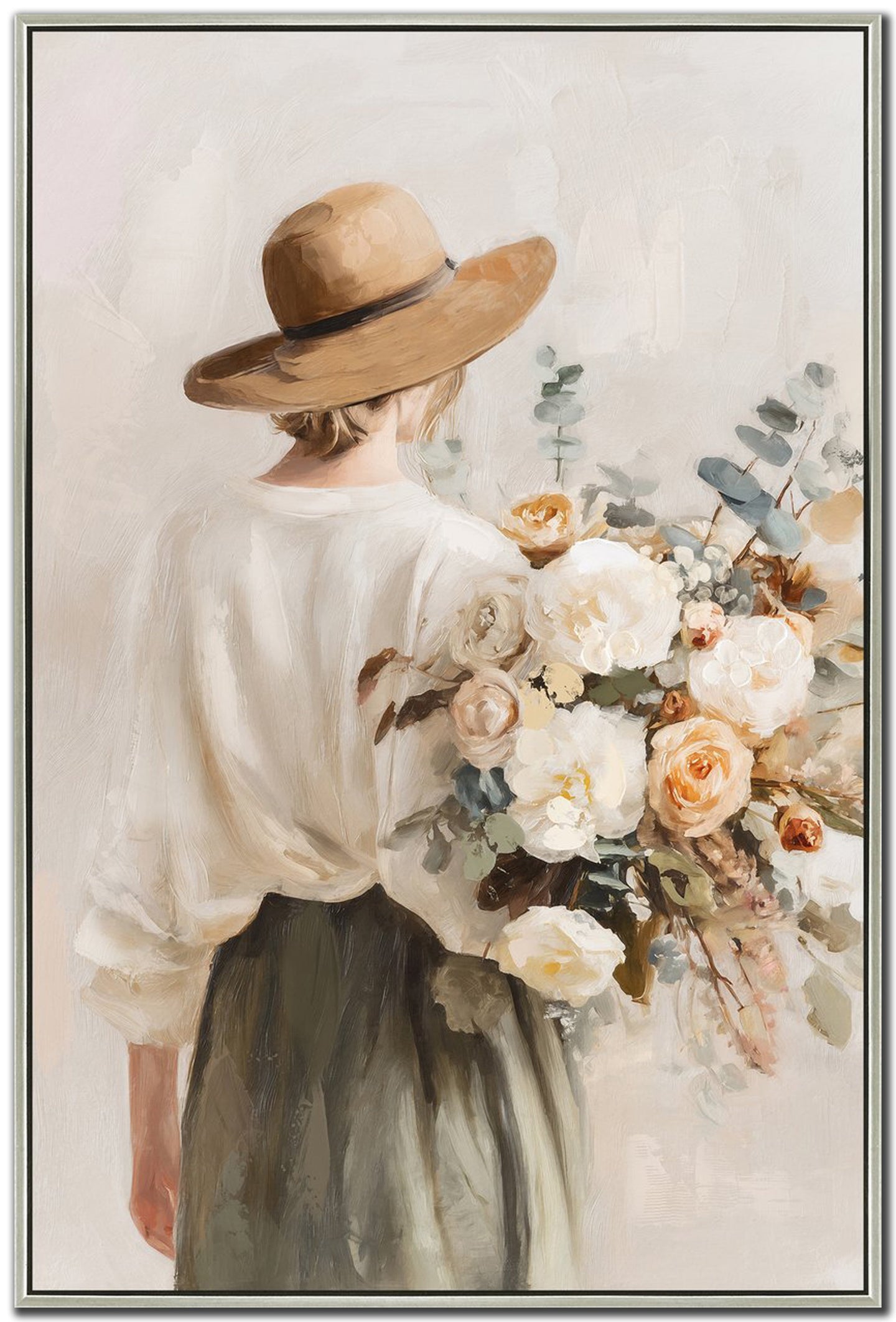 Hand embellished canvas art in a Champagne Floating Frame